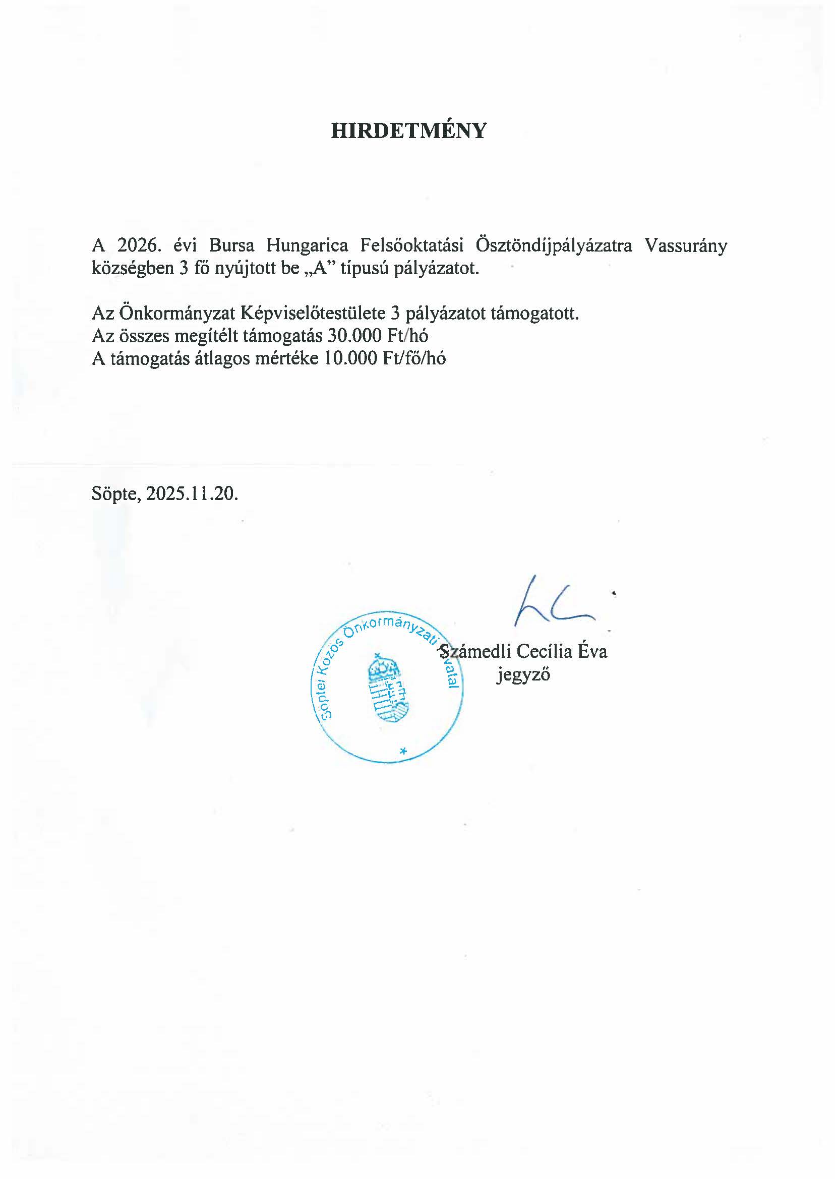 Bursa pályázat eredménye